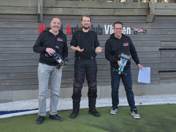 Super tof om dit keer ook 3 stadium trucks aan de start te hebben. Een klasse die weer steeds populairder wordt. RC legend Willy, Marijn en Patrick gingen op dikke banden met elkaar de strijd aan. Startgrid Marijn netjes op pole position gevolgd door Patrick en Willy. Eindstand na 3 finale heats; het blijkt dat ervaring loont want Willy pakt knap de overwinning vanaf de derde startplek. Marijn op P2 geëindigd en Patrick op P3. Eervolle vermelding voor Patrick die zoals we van hem gewend zijn weer een prachtige bolide opgebouwd had. Dit keer zelfs met een Traxxas aan de start. Niet bang zullen we maar zeggen. 😉 De setup heeft nog wat werk nodig maar ging al verrassend goed de baan rond.