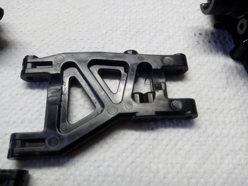 - De servo saver is nogal zacht. Daarom mag je deze vervangen of eventueel de originele lijmen zodat er geen speling meer opzit. De Tamiya Hi-Torque Servo Saver (300051000) is een goed alternatief